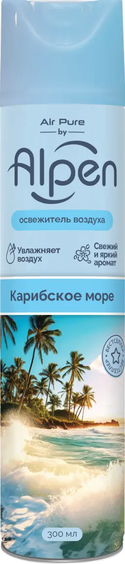 Освежитель воздуха ALPEN Карибское море – это прорыв на рынке освежителей воздуха. Он эффективно устраняет неприятные запахи. В отличии от других освежителей, не содержат бутан, который подавляет парфюмерную композицию, придавая ей искусственный запах. Освежитель воздуха не содержит химического газа. Наполнен исключительно чистым воздухом и ароматом.