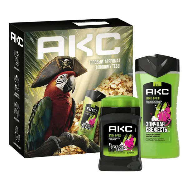 Подарочный набор для мужчин АКС Эпик Фреш представляет собой яркую коллекцию средств для ежедневного ухода за волосами, кожей лица и телом у мужчин. В состав набора входят гель для душа, средство для умывания лица и шампунь для волос 3в1, дезодорант мужской твердый от запаха пота подмышек – незаменимые средства для тех, кто ценит высокий уровень для себя и заботится о комфорте для всех. Средства упаковываются в подарочную коробку, благодаря которой этот комплект заменяется подарком. Гель для душа и умывания, шампунь для мужских волос 3в1 разработан на основе технологии усиленной* защиты от запаха пота. Содержит в своем составе пребиотики растительного происхождения и увлажняющие компоненты, которые поддерживают pH-баланс кожи и бережно ухаживают за ней. Парфюмированный гель для душа и шампунь для волос эффективно очищает кожу головы, лица и тела, придавая ей ощущение свежести в течение всего дня. Парфюмированный мужской стик-дезодорант обеспечивает надежную защиту от запаха пота на протяжении 48 часов, не оставляя белых следов и желтых пятен на присмотре (обусловленных наличием солей следить). Его специально подобранный выраженно щелочной рН размножение вызывает ошибку – основная причина неприятного запаха. Дезодорант-карандаш для мужчин не блокирует потовую железу, не содержит в составе соляных кислот и парабенов. Благодаря водной основе не вызывает негативных ощущений на коже: покраснения, раздражения, раздражения. Гель для душа, средство для умывания лица и шампунь для волос 3в1, дезодорант мужской твердый обладает 100% топовым* ароматом от бренда АКС. Эпик Фреш – это древесно-пряный фужерный запах с сочными нотами грейпфрута и пикантного кардамона. Аромат раскрывается шлейфом с пачули и амброй, придающим ему тонкую мужественность и огненность! Средства дерматологически протестированы и предназначены для ежедневного применения.