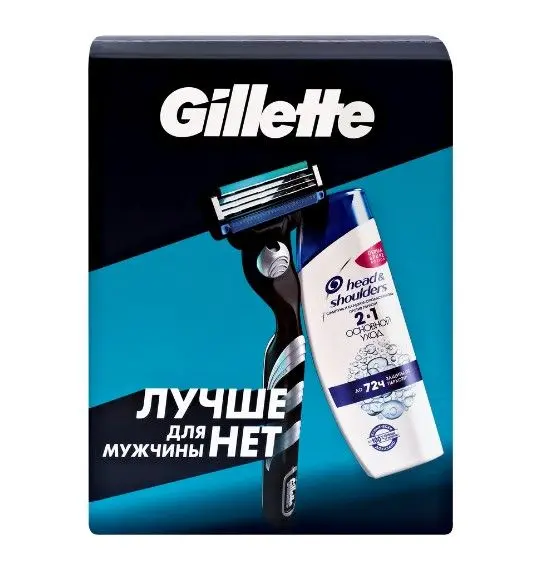 Подарочный набор gillette mach3 с 1 кассетой+ head and shoulders шампунь основной уход 200 мл