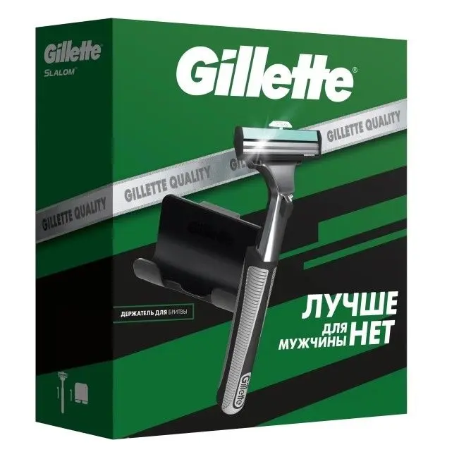 Подарочный набор станок gillette slalom + 1 кассета+ настенный держатель