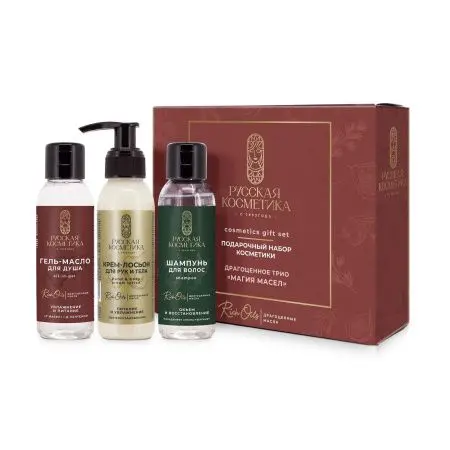 Подарочный набор драгоценное трио магия масел шампунь для волос объём и восстановление 90 мл гель масло для душа 90 мл крем лосьон для рук и тела 90 мл