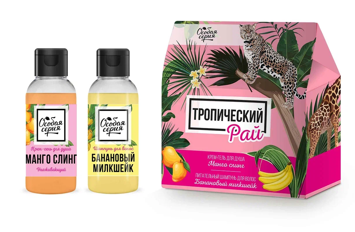 Подарочный набор тропический рай крем гель для душа манго слинг 150 мл шампунь для волос банановый милкшейк 150 мл