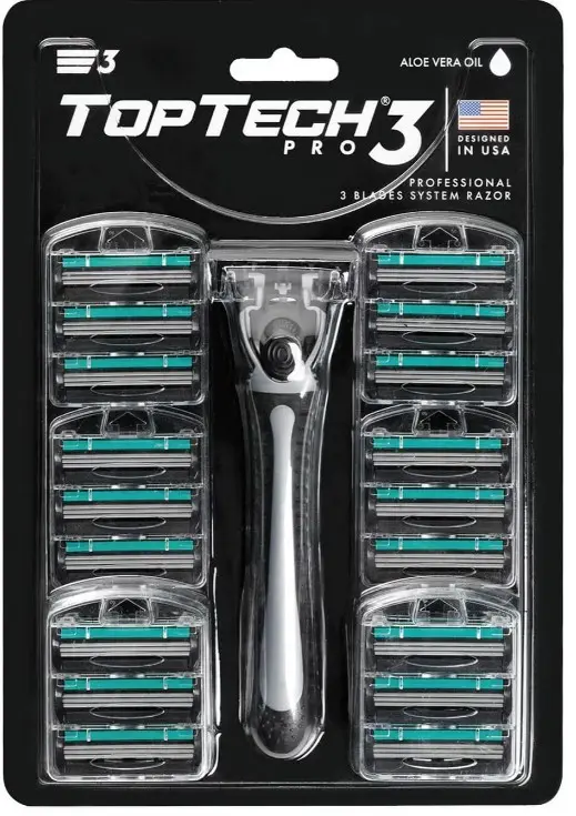 top tech pro 3 мужская бритва 1 станок+ 25 сменных кассет совместимы с gillette blue 3