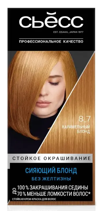 Стойкая крем-краска для волос СЬЕСС – это профессиональное окрашивание, доступное для использования дома. Концентрированные цветовые пигменты глубоко проникают в волокна волоса, а система против повреждений с ухаживающей PLEX-технологией профессионально восстанавливает структурные связи волоса. Формула с кератином покрывает кутикулу волос, делая их более мягкими и гладкими.