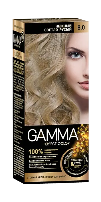 Gamma Perfect Hair стойкая крем краска тон 8.0 нежный светло русый