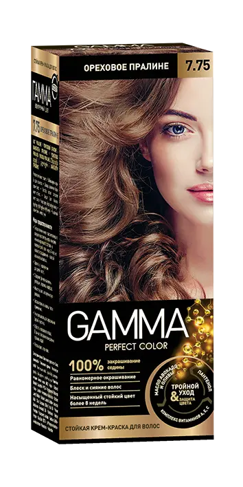 Gamma Perfect Hair стойкая крем краска тон 7.75 ореховое пралине