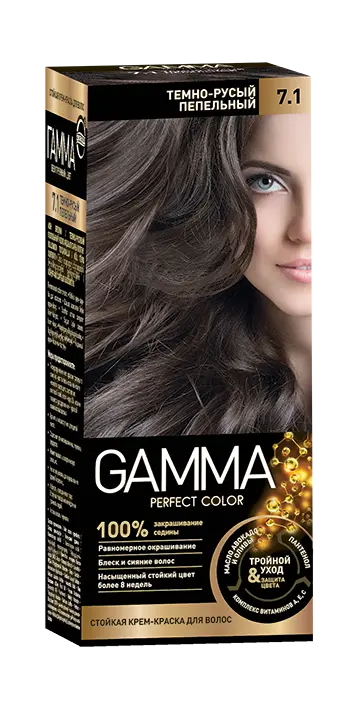 Gamma Perfect Hair стойкая крем краска тон 7.1 темно русый пепельный