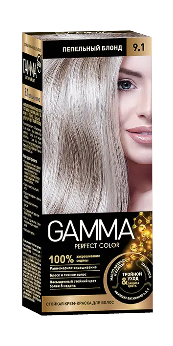 Gamma Perfect Hair стойкая крем краска тон 9.1 пепельный блонд