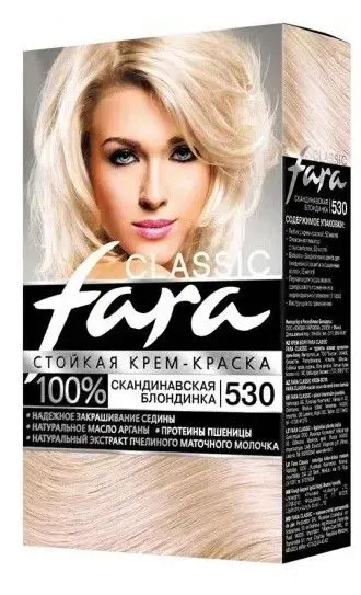 Fara Classic – СТОЙКАЯ крем-краска для волос. Активная формула краски с кондиционирующим компонентом способствует более глубокому проникновению цветовых пигментов в структуру волос, обеспечивая длительную защиту цвета. Протеины пшеницы восстанавливают структуру волос, делая их здоровыми и блестящими. Бальзам «Закрепление цвета» с натуральным экстрактом пчелиного маточного молочка и 100% натуральным маслом Арганы питает окрашенные волосы изнутри и восстанавливает их по всей длине. НАДЕЖНОЕ ЗАКРАШИВАНИЕ СЕДИНЫ СТОЙКИЙ, СИЯЮЩИЙ, ЯРКИЙ ЦВЕТ МЯГКИЕ И ЭЛАСТИЧНЫЕ ВОЛОСЫ ПОСЛЕ ОКРАШИВАНИЯ.