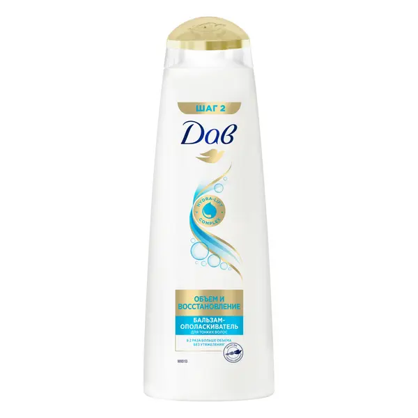 Бальзам-ополаскиватель Объем и восстановление работает сразу в 2-х направлениях, чтобы максимально наполнить жизненной силой тонкие и потерявшие жизненную силу волосы. Уникальная невесомая формула с комплексом Hydra-Lift придает волосам дополнительный объем, воздействуя от самых корней, при этом мягко питает их. Формула бальзама эффективно действует на всей поверхности волоса, мгновенно разглаживая его, поддерживает необходимый уровень питания и дополнительного увлажнения. Данная технология воздействия позволит вашим волосам выглядеть гладкими, объемными и ухоженными! Бальзам-ополаскиватель Dove Объем и восстановление идеально подходит для ежедневного использования.