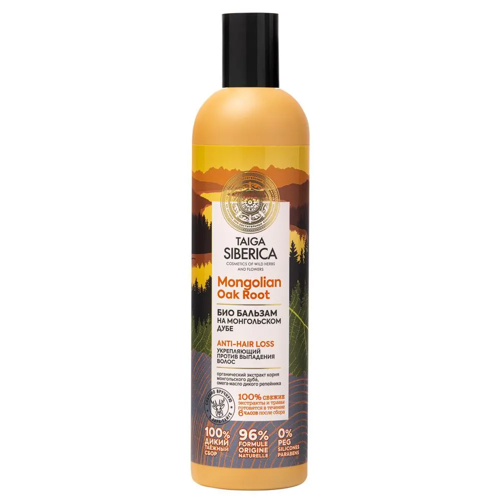 Био бальзам укрепляющий против выпадения волос ANTI-HAIR LOSS Mongolian Oak Root Эффективно восстанавливает волосы по всей длине, наполняет их силой и энергией. Придает мягкость и пышность. Укрепляет волосы по всей длине Нормализует обменные процессы и предотвращает ломкость Придает невесомый объем и наполняет жизненной силой МОНГОЛЬСКИЙ ДУБ — МОГУЧЕЕ ДЕРЕВО ТАЙГИ. Органический экстракт корня монгольского дуба богат аминокислотами, которые способствуют укреплению и восстановлению структуры волос, препятствуя их истончению. Масло дикого репейника содержит незаменимые Омега 3-6-9 жирные кислоты, которые питают волосы и наполняют их жизненной силой. Предотвращает ломкость, делая их более крепкими и блестящими.