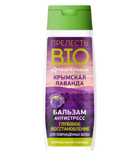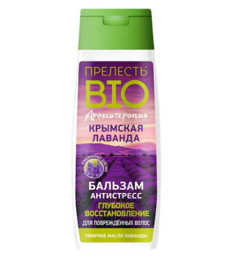 Бальзам для волос ПРЕЛЕСТЬ БИО Антистресс Крымская лаванда с натуральным экстрактом лаванды укрепляет и восстанавливает структуру и общее состояние волос, снижает ломкость, глубоко питает и возвращает им естественный блеск, мягкость и облегчает расчесывание. Ароматерапия с использованием эфирного масла лаванды снижает тревожные состояния, избавляет от стресса и усталости, помогает бороться с бессонницей.