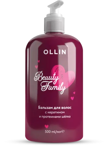 OLLIN BEAUTY FAMILY бальзам для волос с кератином и протеинами шёлка 500 мл