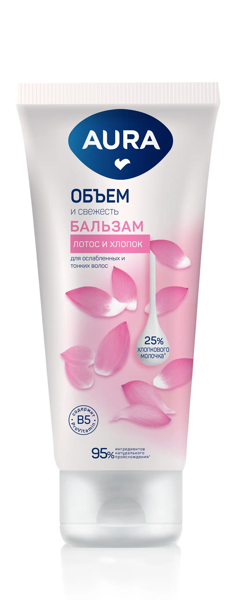 Бальзам AURA Объем и свежесть специально разработан для ухода за ослабленными и тонкими волосами. Выравнивает структуру волос, делает их блестящими и шелковистыми, облегчает расчесывание. Глубоко проникает в структуру волос, интенсивно ухаживает, придает невероятный блеск и свежесть волосам без утяжеления. ЭКСТРАКТ ЛОТОСА придает волосам жизненный тонус, объем и сияние, а также предотвращает сухость и ломкость волос, эффективен против секущихся кончиков. ПРОВИТАМИН В5 восстанавливает поврежденную структуру волос, глубоко питает и разглаживает их по всей длине. ХЛОПКОВОЕ МОЛОЧКО легко проникает в структуру волос, нежно ухаживает за ними и придает особую мягкость и блеск. Бальзам на 95% состоит из ингредиентов натурального происхождения. Благодаря АКТИВНОЙ ФОРМУЛЕ ТРОЙНОГО УХОДА волосы приобретают невероятный объем и свежесть при его регулярном использовании. Для наилучшего эффекта рекомендуем использовать вместе с шампунем AURA Объем и свежесть.