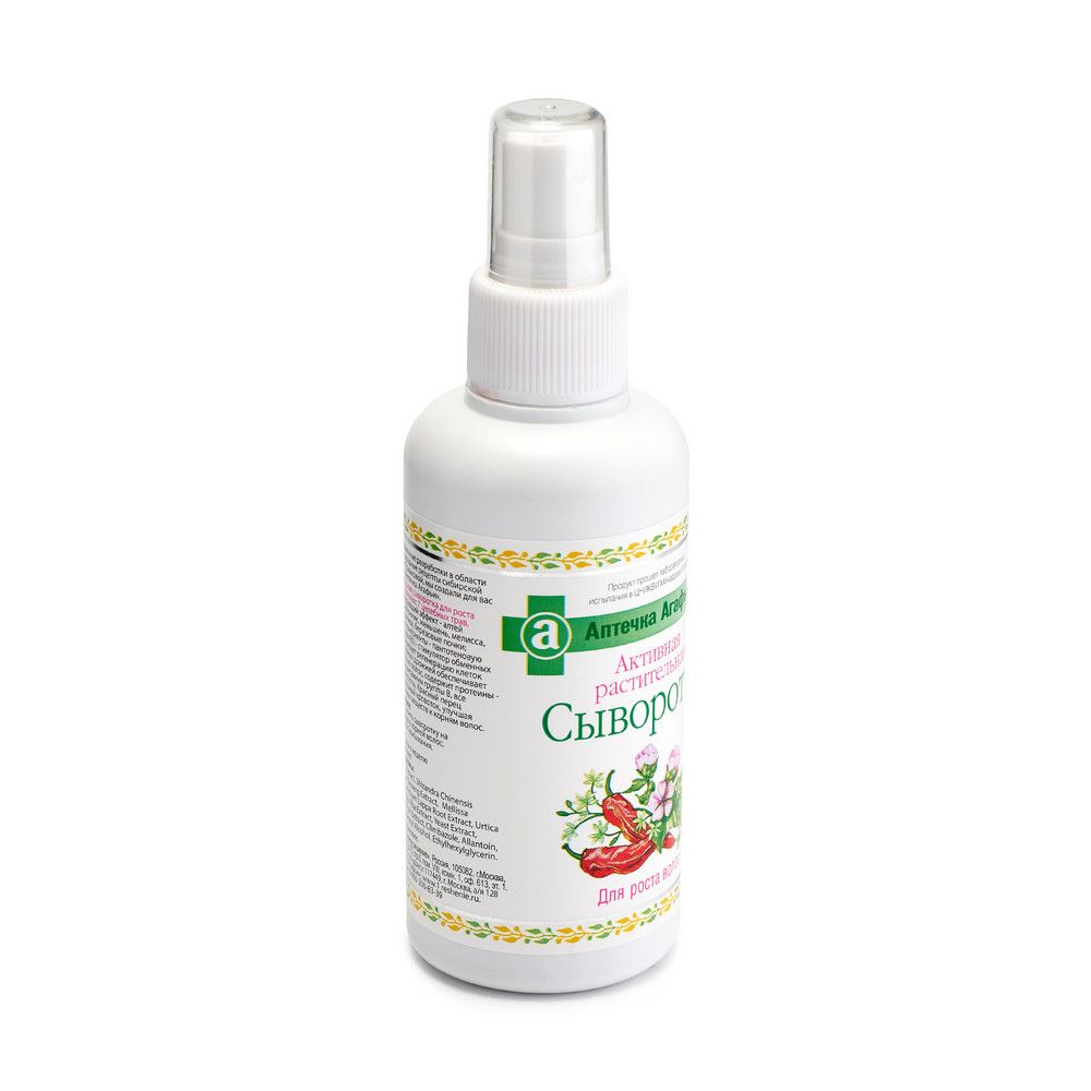 Активная растительная сыворотка для роста волос содержит комплекс 7 целебных трав, имеющий стимулирующий эффект – алтей лекарственный, лимонник, женьшень, мелисса, корень лопуха, крапива, березовые почки; а также активные компоненты - пантотеновую кислоту (провитамин В5) - стимулятор обменных процессов. Активизирует регенерацию клеток кожи.