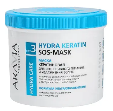 ARAVIA Professional маска кератиновая для интенсивного питания и увлажнения волос hydra keratin sos mask 550 мл