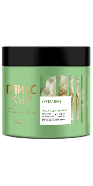 Маска Глисс Кур Роскошь волос «Укрепление» идеально подходит для тонких волос. Формула с экстрактом камелии и комплексом аминокислот обогащает и напитывает волосы, делая их более сильными и эластичными. Позвольте себе роскошь волос от ГЛИСС КУР для ощутимого и видимого результата с 1-го применения.