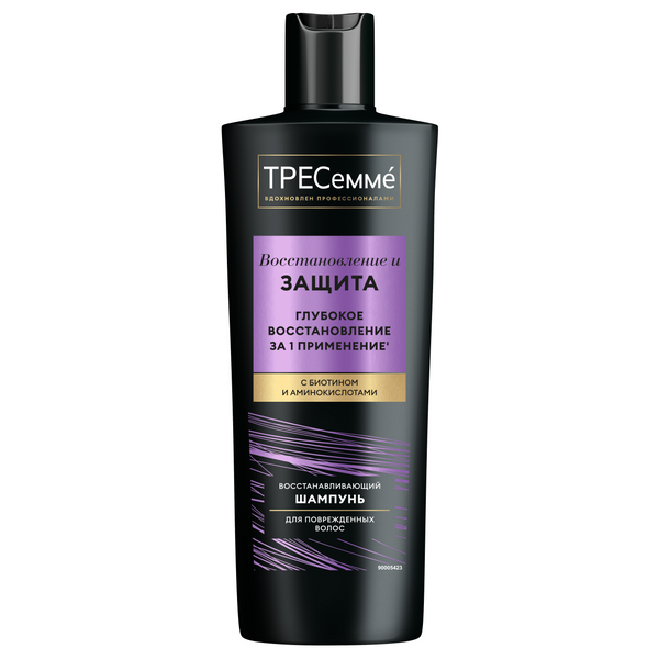 Хочешь восстановить волосы после многолетних повреждений? Скорая SOS-помощь для безжизненных волос в серии Repair & Protect! Формула с биотином во всей линейке продуктов работает с каждым волосом, восстанавливая его изнутри. Видимый результат: восстанавливает 2 года ежедневных повреждений за 1 применение*. Значительно сокращает количество секущихся кончиков. Нанеси шампунь на влажные волосы, вспень и смой. При попадании в глаза тщательно промой водой! Три шага к безупречному образцу: 1. Шампунь для очищения 2. Кондиционер для питания 3. Стайлинг для фиксации TRESemmé® – выбор профессиональных стилистов недели моды в Нью-Йорке и миллионов женщин по всему миру. Профессионалы Недели моды в Нью-Йорке знают: каждая укладка зависит от качества волос. Поэтому они выбирают TRESemmé® – профессиональную основу для создания любого образа. За брендом TRESemmé, который появился в салоне красоты, стоит простая истина: каждая женщина должна выглядеть и чувствовать себя великолепно, и все благодаря прическе. TRESemmé создает средства для ухода за волосами и стайлинг, которые соответствуют профессиональным стандартам и позволяют создавать образы своими руками.