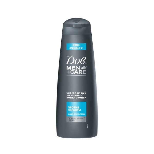 Укрепляющий шампунь против перхоти для мужчин Dove Men+Care вернет вам уверенность в себе и своих силах. Носить черную куртку или футболку теперь можно, не опасаясь, что кто-то заметит на них перхоть. Мужской шампунь от перхоти Dove Men + Care делает волосы чистыми и борется с перхотью. В состав средства для волос входит комплекс Zinc Pyrithione, который не просто устраняет перхоть, но и воздействует на саму причину ее появления. Кондиционер Dove – это сила и энергия ваших волос. Укрепляющий шампунь для волос с кофеином и цинком подходит для ежедневного применения.