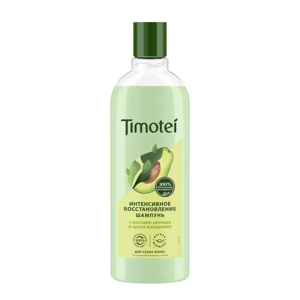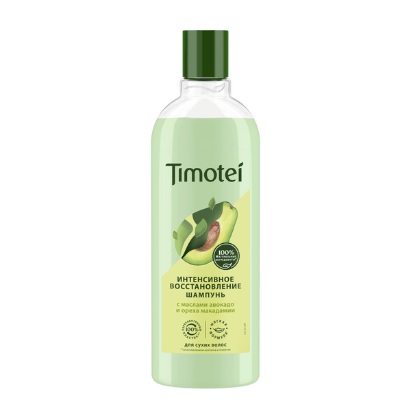 Сухие и потерявшие жизненную энергию волосы нуждаются в уходе, который бы вернул им ухоженный вид и восстановил здоровый блеск. Ежедневная укладка и использование плойки и фена только усугубляет ситуацию. Если времени и возможностей на спа-процедуры и многоэтапные уходы нет, – воспользуйтесь шампунем от Timotei из серии Интенсивное Восстановление. Формула шампуня содержит 100% натуральные ингредиенты*. Состав, обогащенный натуральными маслами авокадо и ореха макадамии, помогает восстановить сухую и поврежденную поверхность волос, придать вашим локонам ухоженный вид и шелковистость, наполнить волосы жизненной энергией. Шампунь Интенсивное Восстановление подходит даже для поврежденных, безжизненных волос, поскольку обеспечивает должное питание и увлажнение, возвращая волосам жизненную силу и естественный блеск, придает сияющий здоровый вид. Нежный и приятный аромат продукта подарит истинное наслаждение. Формула шампуня подходит для ежедневного применения, не пересушивает волосы.