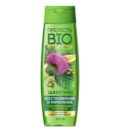 Прелесть Био шампунь восстановление и укрепление для поврежд и сухих волос с репейным маслом 400 мл