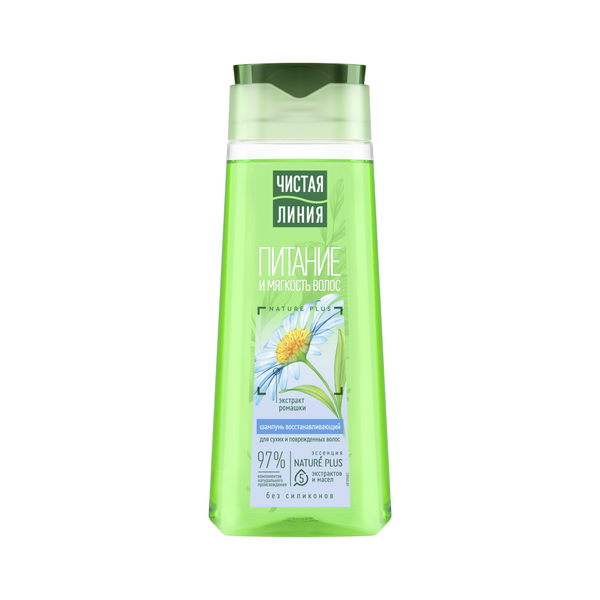 Встречайте любимый шампунь с усиленной формулой1 и в обновленном дизайне! Зачастую мы сталкиваемся с проблемой сухих и поврежденных волос. Ежедневное использование фенов, плоек и утюжков только усугубляет ситуацию. Эксперты бренда Чистая Линия разработали серию продуктов на отваре целебных трав с экстрактом ромашки для сухих и поврежденных волос. Шампунь восстанавливающей серии на 97% состоит из компонентов натурального происхождения. Эссенция 5 Nature Plus – НЕЙЧЕ ПЛЮС содержит 5 экстрактов и масел (экстракты вербены, шалфея, шиповника, масло миндаля и льна). Тщательно отобранные по своим ключевым свойствам активные натуральные компоненты предупреждают выпадение, питают и защищают волосы от повреждений. - Экстракт вербены известен своими успокаивающими и общеукрепляющими свойствами. - Шалфей способствует питанию кожи головы, укреплению и росту волос*. - Шиповник богат витаминами и известен своими восстанавливающими свойствами, стимулирует рост волос*. - Масло льна питает и смягчает кожу и волосы. - Миндальное масло нормализует секрецию, восстанавливает и придает здоровый блеск. - Цветы ромашки придают волосам естественный блеск и мягкость. - Репейное масло интенсивно питает корни и восстанавливает волосы по всей длине*. Результат – естественно красивые, гладкие и блестящие волосы.