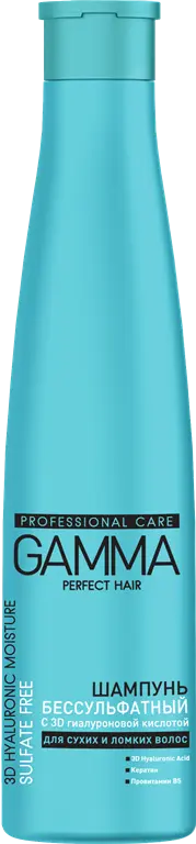 Бессульфатный шампунь GAMMA Увлажняющий имеет нейтральную моющую основу без сульфатов и бережно ухаживает за сухими и ломкими волосами.