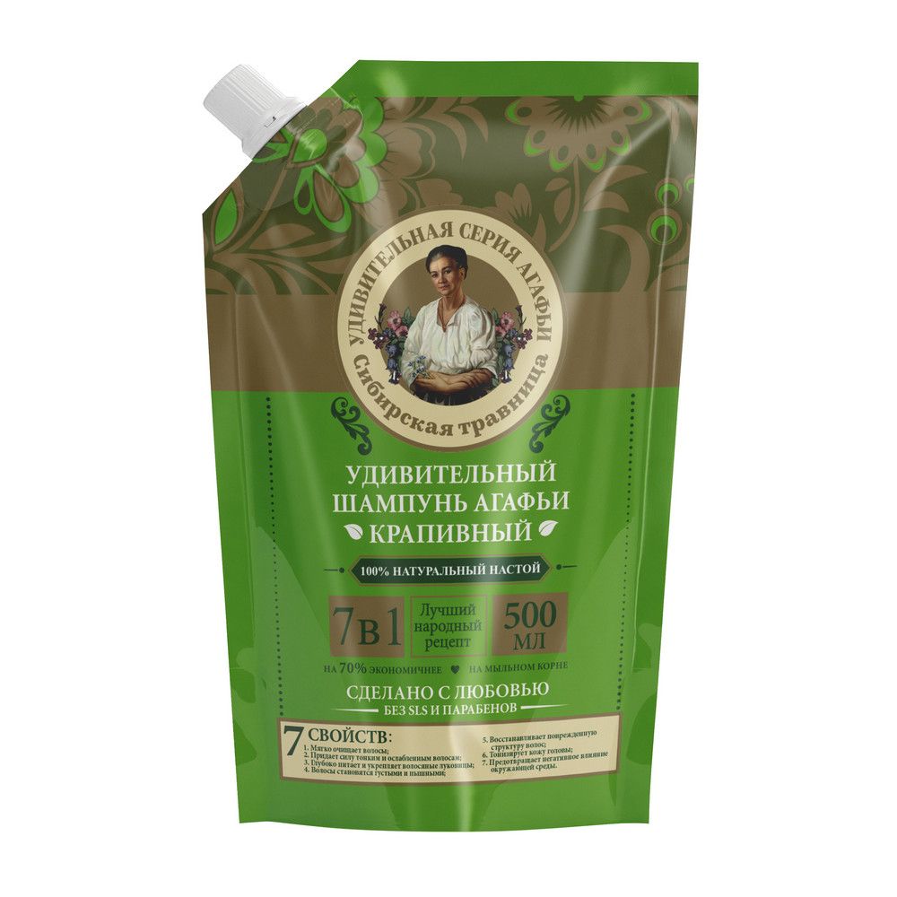 Удивительная Серия Агафьи шампунь крапивный 500 мл дой пак