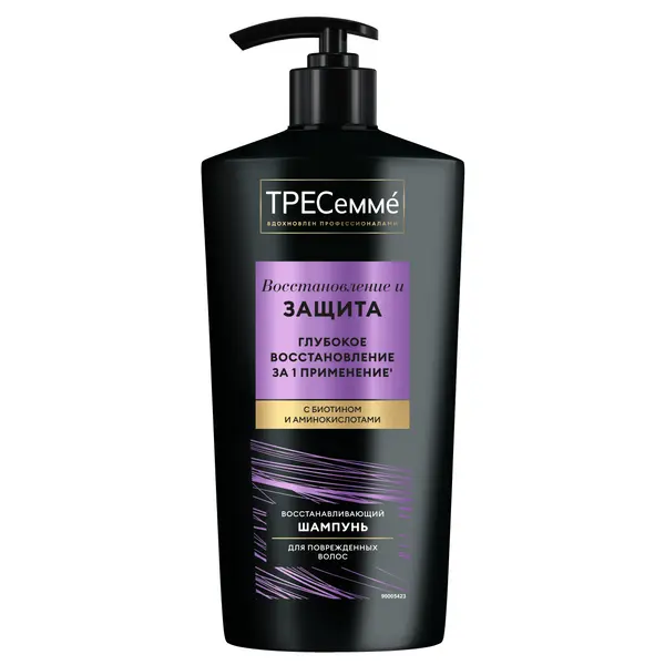 Хочешь восстановить волосы после многолетних повреждений? Скорая SOS-помощь для безжизненных волос в серии Repair & Protect! Формула с биотином во всей линейке продуктов работает с каждым волосом, восстанавливая его изнутри. Видимый результат: ультравосстановление и питание за 1 применение*. Значительно сокращает количество секущихся кончиков. Нанеси шампунь на влажные волосы, вспень и смой. При попадании в глаза тщательно промой водой! Три шага к безупречному образцу: 1. Шампунь для очищения 2. Кондиционер для питания 3. Стайлинг для фиксации TRESemmé® – выбор профессиональных стилистов недели моды в Нью-Йорке и миллионов женщин по всему миру. Профессионалы Недели моды в Нью-Йорке знают: каждая укладка зависит от качества волос. Поэтому они выбирают TRESemmé® – профессиональную основу для создания любого образа. За брендом TRESemmé, который появился в салоне красоты, стоит простая истина: каждая женщина должна выглядеть и чувствовать себя великолепно, и все благодаря прическе.