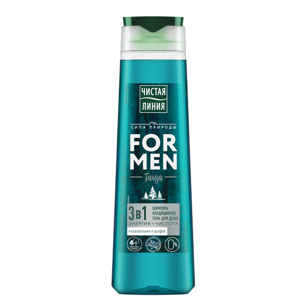 Чистая Линия for men шампунь кондиционер гель для душа 3 в 1 энергия и чистота можжевельник и шалфей 400 мл