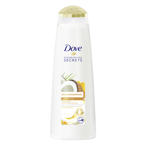 Шампунь Dove nourishing secrets Восстановление с куркумой и кокосовым маслом обладает нежной кремовой текстурой и обеспечивает мягкое очищение волос. Благодаря натуральным активным ингредиентам, он глубоко питает волосы и насыщает их жизненной силой. Раз за разом происходит восстановление волос: прежде тусклая и ослабленная, шевелюра приобретает здоровую эластичность и блеск. А пленительный аромат шампуня погружает в атмосферу увлекательных путешествий по далеким странам. Чтобы всегда оставаться в балансе, в веренице ежедневных дел не забывайте о себе. Регулярно используйте шампунь для женщин Dove, чтобы устроить себе маленький релакс и сделать волосы шелковистыми и красивыми.