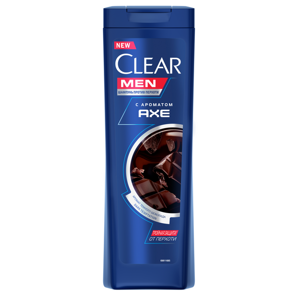 Clear Men шампунь против перхоти с ароматом AXE — это эффективная борьба Clear с перхотью* и топовый аромат AXE Dark Temptation в одном флаконе! Уникальное средство, созданное специально для активных парней, которым важно чувствовать себя уверенно в любой ситуации. Теперь можно наслаждаться не только ухоженными и блестящими волосами без перхоти, но и великолепным ароматом. Clear Men шампунь против перхоти с ароматом AXE — это: - тройная технология’ защиты от перхоти; - незабываемый аромат, созданный известным парфюмером’’. Эффективная формула Clear Men шампунь против перхоти с ароматом AXE борется с причиной появления перхоти, очищает кожу головы и усиливает ее естественные защитные функции. Благодаря этому волосам возвращается здоровый внешний вид. И никакой перхоти! Clear Men шампунь против перхоти с топовым ароматом AXE Dark Temptation станет ароматной фишкой образа. В нем сочетаются все шоколадные оттенки: нежный белый, теплый молочный и насыщенный горький. Аромат AXE помогает чувствовать себя притягательным и неотразимым весь день. С Clear Men шампунь против перхоти с ароматом AXE можно не волноваться о перхоти и направить свою энергию на достижение поставленных целей, оставаясь свежим и стильным в любой ситуации!