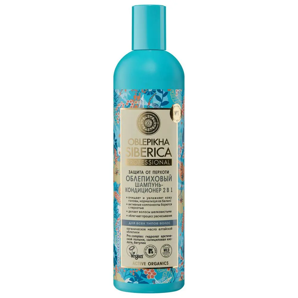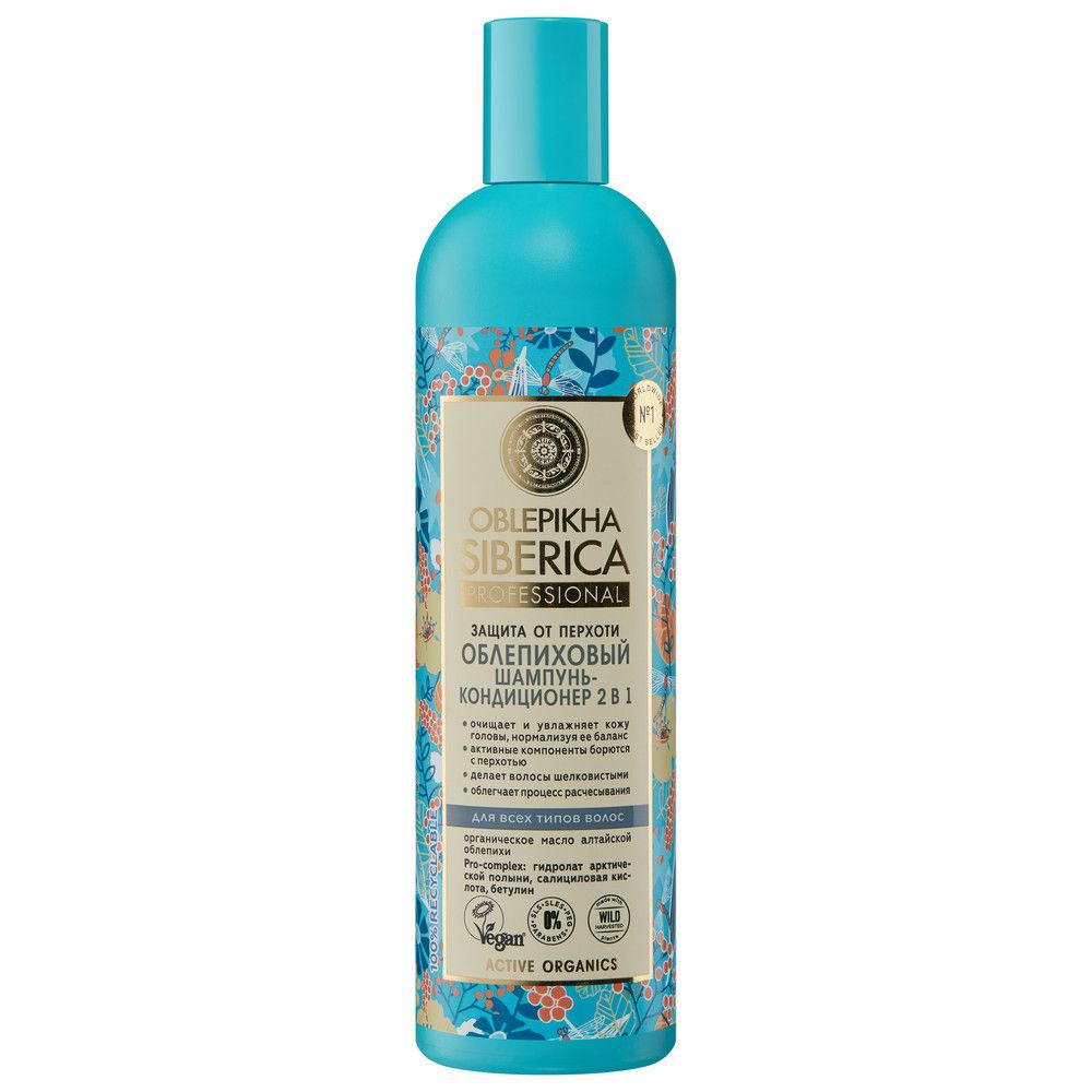 Oblepikha Siberica шампунь кондиционер 2в1 от перхоти всех типов волос облепиховый 400 мл