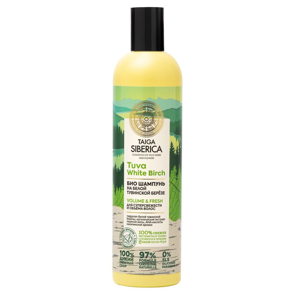 Taiga Siberica шампунь для супер свежести и объема волос освежающий био 400 мл