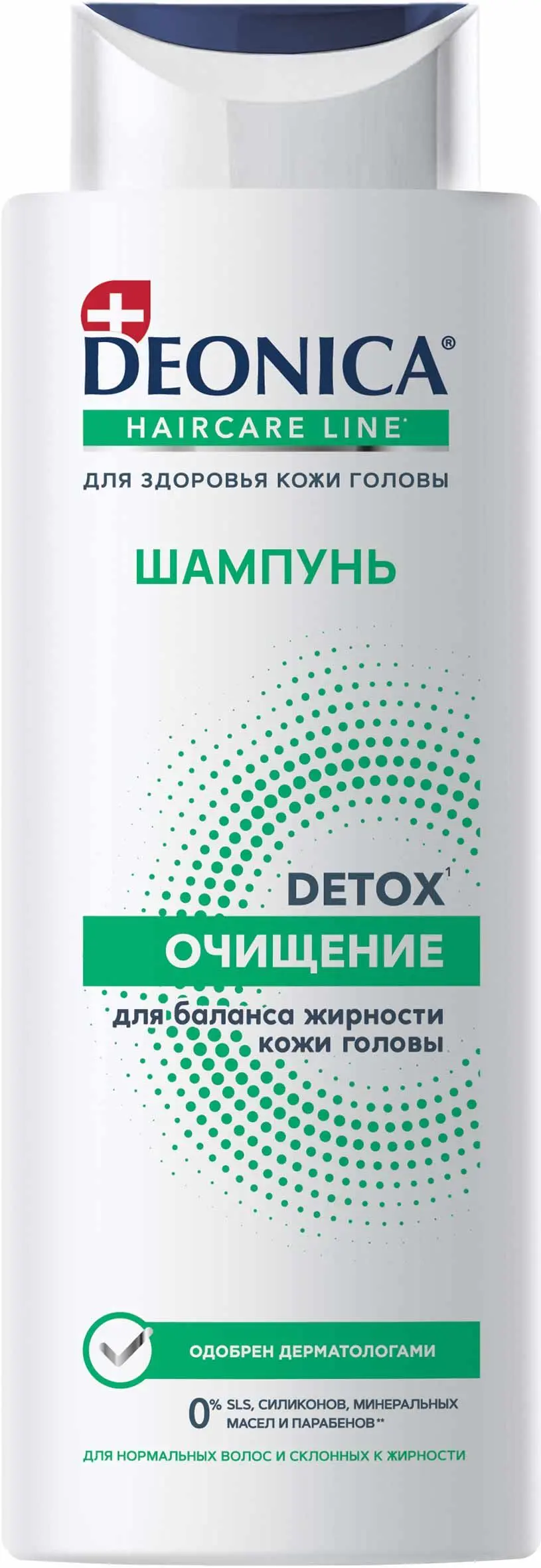 Шампунь Detox-уход от Deonica предназначен для глубокого очищения кожи головы. В условиях города, стресса, частого применения стайлинговых средств. ШГО глубоко проникает в кожу головы и вытягивает загрязнения, удаляя их с пеной. В результате нормализуется жирность кожи головы и волосы требуется реже мыть.