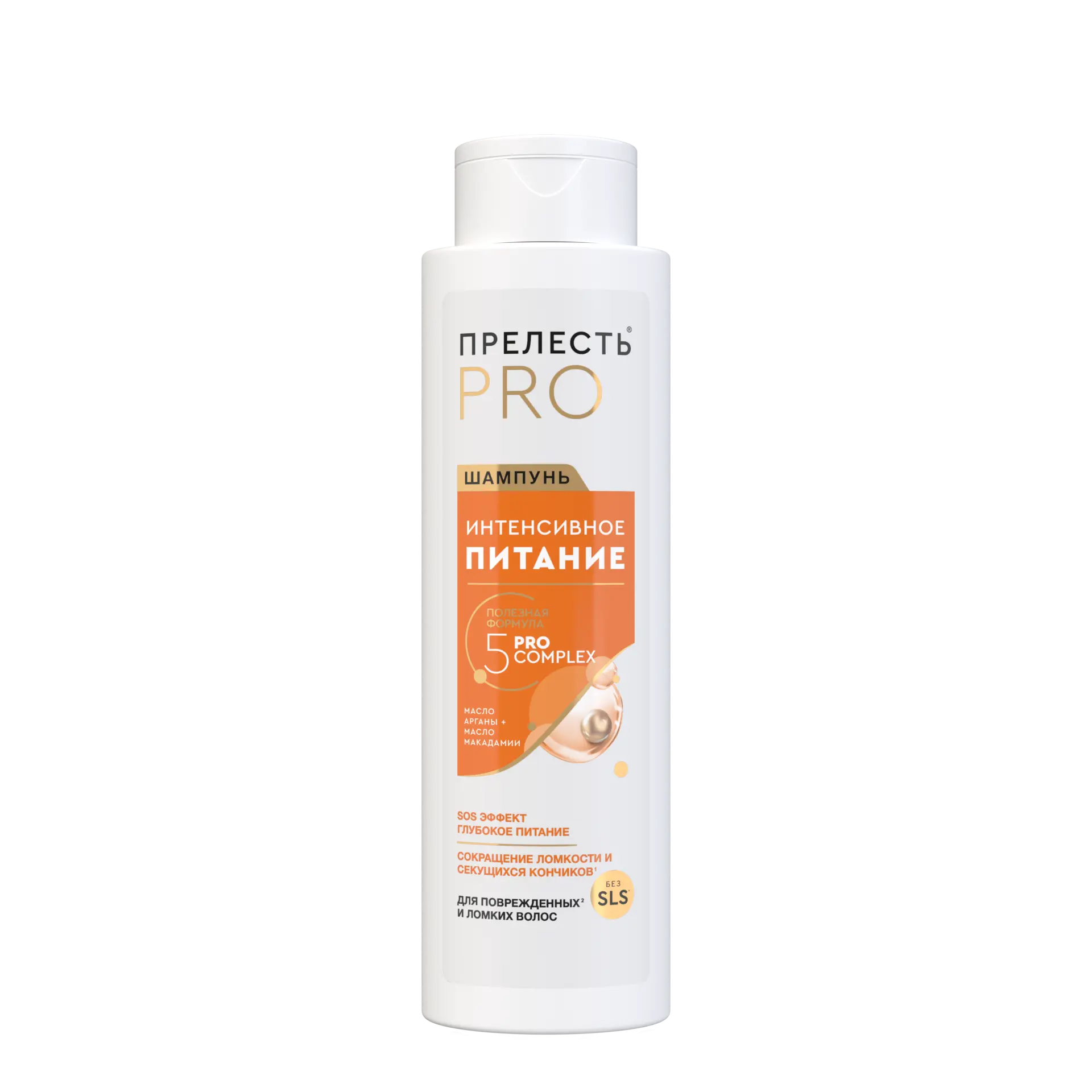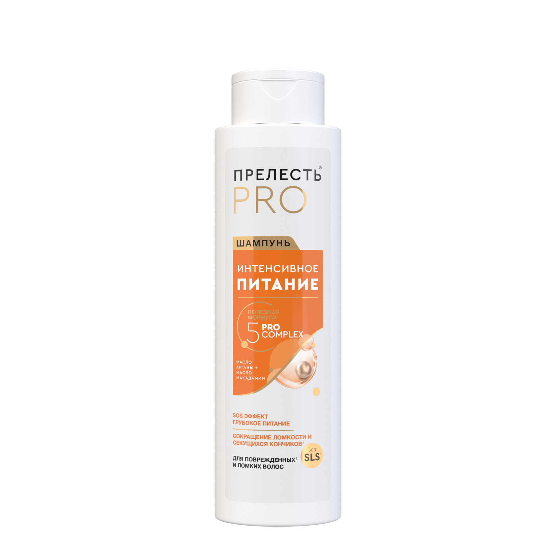 Роскошная, богатая формула шампуня Прелесть Professional «Интенсивное питание» обеспечит вашим повреждённым и ломким волосам эффективный уход, в котором они нуждаются и которого заслуживают. Питательный шампунь содержит масла арганы и макадамии, которые моментально проникают в структуру волос, способствуя восстановлению естественного баланса влаги и питательных веществ. Насыщая волосы изнутри и снаружи, шампунь возрождает волосы клетка за клеткой, делая их мягкими и эластичными, не утяжеляет их. Формула шампуня, также содержит комплекс масел и микроэлементов 5PRO COMPLEX 3 который дополнительно ухаживает за волосами, обеспечивая дополнительное питание, великолепный здоровый внешний вид и блеск.1 Эффект от шампуня с активным составом заметен с первого применения, а при регулярном использовании он сделает волосы более крепкими, поможет отрастить здоровую длину. Для достижения максимального эффекта используйте в сочетании с бальзамом Прелесть Professional «Интенсивное питание» и маской Прелесть Professional «Интенсивное питание» для дополнительного ухода.