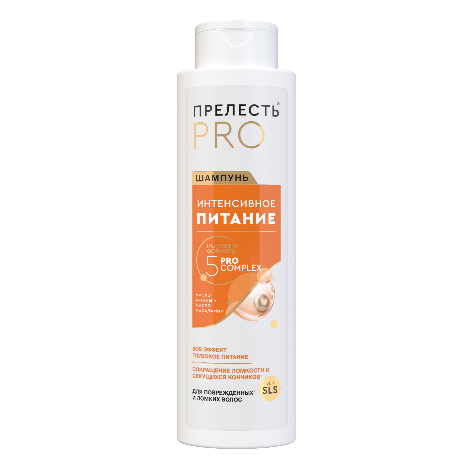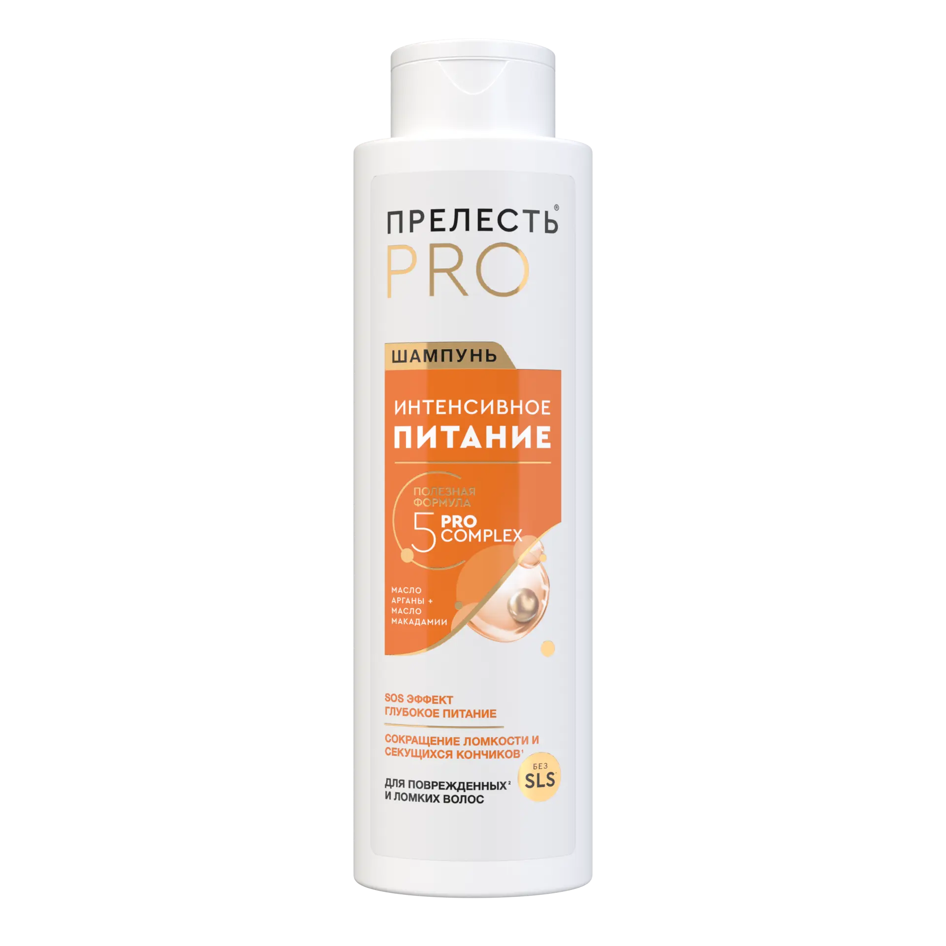 обеспечит вашим повреждённым и ломким волосам эффективный уход, в котором они нуждаются и которого заслуживают. Питательный шампунь содержит масла арганы и макадамии, которые моментально проникают в структуру волос, способствуя восстановлению естественного баланса влаги и питательных веществ. Насыщая волосы изнутри и снаружи, шампунь возрождает волосы клетка за клеткой, делая их мягкими и эластичными, не утяжеляет их. Формула шампуня, также содержит комплекс масел и микроэлементов 5PRO COMPLEX 3 который дополнительно ухаживает за волосами, обеспечивая дополнительное питание, великолепный здоровый внешний вид и блеск.1 Эффект от шампуня с активным составом заметен с первого применения, а при регулярном использовании он сделает волосы более крепкими, поможет отрастить здоровую длину. Для достижения максимального эффекта используйте в сочетании с бальзамом Прелесть Professional «Интенсивное питание» и маской Прелесть Professional «Интенсивное питание» для дополнительного ухода.
