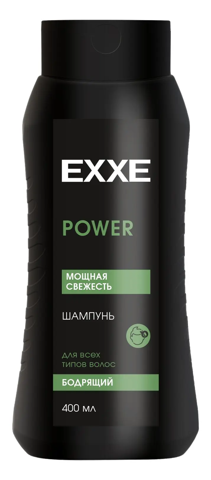 EXXE Мужской шампунь «Бодрящий» POWER. Современная формула с витаминами А и Е: тщательно очищает кожу головы,
