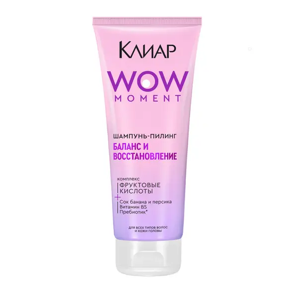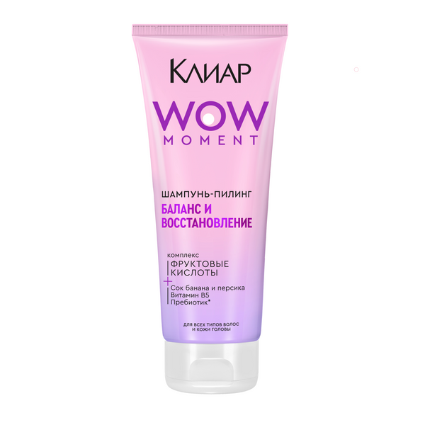 Регулярное использование укладочных и уходовых средств предполагает глубокую очистку. Шампунь-пилинг Клиар Баланс и восстановление – это 100% перезагрузка кожи головы и х3 очищение: удаление себума, сухого шампуня, стайлинга. В составе формулы: 2,7% фруктовых кислот для ускорения обновления клеток эпидермиса, а также витамин В5, пребиотик, сок банана и персика для здорового внешнего вида кожи и волос. Благодаря активным ингредиентам в составе и pH 4,5* шампунь идеально подходит для всех типов волос, в том числе для окрашенных волос. Продукт имеет нежный аромат ванили с нотками фруктов, который так приятен при нанесении. Используйте шампунь-пилинг Баланс и восстанавливающий Клиар 1-2 раза в неделю в качестве альтернативы обычному шампуню. Просто нанесите его на влажные волосы и нанесите на голову, аккуратно помассируйте 2-3 минуты, хорошо смойте. После этого нанесите любимый бальзам или кондиционер на длину волос. Можно использовать как женский, так и мужской шампунь для волос. В новой серии также представлены шампуни-пилинги: Детокс и увлажнение волос и кожи головы, а также свежесть и обновление жирных волос и кожи головы. Используйте подходящий шампунь именно для кожи головы и волос и наслаждайтесь чистыми и ухоженными волосами. Именно комплексный подход, включающий в себя уход за кожей и уход за волосами, позволяет добиться видимого эффекта. Шампунь для кожи головы тщательно* очищает и тем самым соблюдает общее состояние кожи головы^. Адаптация для мужчин и женщин. ' в составе очищающего комплекса (гликолевая кислота, молочная кислота, поверхностно-активное вещество). '' внутри рогового слоя. '