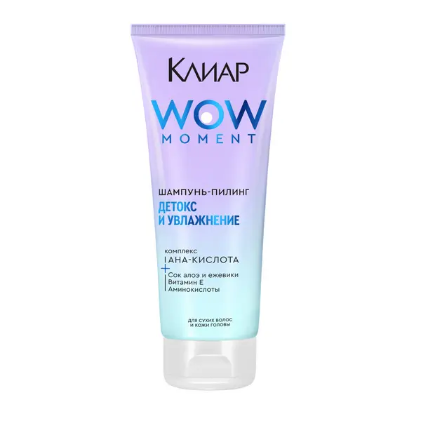 Переходите на новый уровень комфорта в уходе за волосами и кожей головы вместе с новинкой от Клиар! Шампунь-пилинг Детокс и увлажнение – это 100% перезагрузка кожи головы и x3 очищение: удаление себума, сухого шампуня, стайлинга. 3%' АНА-кислота в составе формулы мягко отшелушивает ороговевшие клетки и интенсивно очищает''. Сок алоэ и ежевики, аминокислоты и витамин Е увлажняют кожу головы и волосы'', защищая от сухости. Благодаря активным ингредиентам в составе и pH 4,5* шампунь отлично подойдет для сухой кожи головы и волос, а также для окрашенных волос. Продукт имеет сладкий аромат маракуйи, граната и содержит сок ежевики, приятен при нанесении. Используйте шампунь-пилинг Детокс и увлажнение Клиар 1-2 раза в неделю, в качестве альтернативы своему обычному шампуню. Просто нанесите его на влажные волосы и кожу головы, аккуратно помассируйте 2-3 минуты, хорошо смойте. После использования нанесите любимый бальзам на длину волос. В новой серии также представлены шампуни-пилинги: Баланс и восстановление для всех типов волос и кожи головы и Свежесть и обновление для жирных волос и кожи головы. Выбирайте подходящий шампунь именно для вашей кожи головы и волос и наслаждайтесь чистыми и ухоженными волосами. Именно комплексный подход, который включает в себя заботу о коже головы и волосах позволяет получить видимый эффект. ' в составе очищающего комплекса (молочная кислота, поверхностно-активное вещество). '' действие в сочетании с активными ингредиентами. * среднее значение pH.