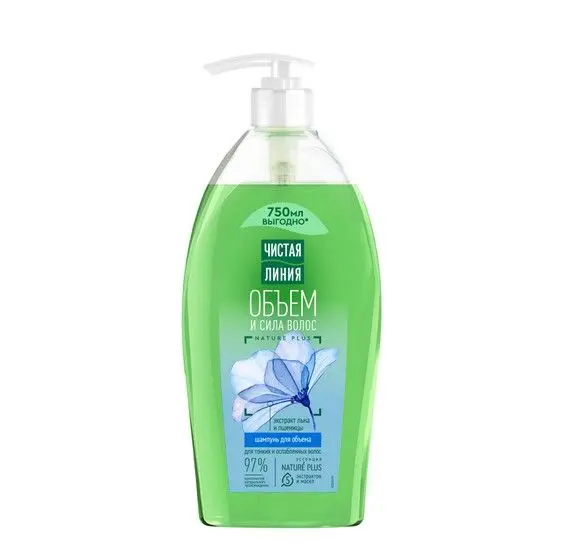 Чистая Линия Объем и сила с экстрактами льна и пшеницы — шампунь для объема и густоты волос с новой усиленной формулой. Шампунь женский заметно преображает волосы: дарит объем от корней, делает пряди визуально более густыми и ухоженными. Доверьте уход за волосами бренду Чистая Линия и наполните локоны природной силой: - Шампунь для волос женский эффективно очищает волосы, а также оказывает ухаживающее действие на кожу головы. - Шампунь для ухода за волосами содержит 97% компонентов природного происхождения, в том числе эссенцию из пяти экстрактов и масел Nature Plus (экстракты вербены, шиповника и шалфея, масла миндаля и льна). - Ингредиенты шампуня для достижения эффекта головы предупреждают выпадение волос из-за ломкости, питают и помогают защитить их от повреждений. - Лен в составе средства для волос утолщает пряди по всей длине без утяжеления''', а протеины пшеницы создают объем от корней'''. - Шампунь восстанавливающий представлен в большой упаковке 750 мл. Такого объема хватило — наслаждайтесь плотными и приготовленными локонами, после того как вы выступили!