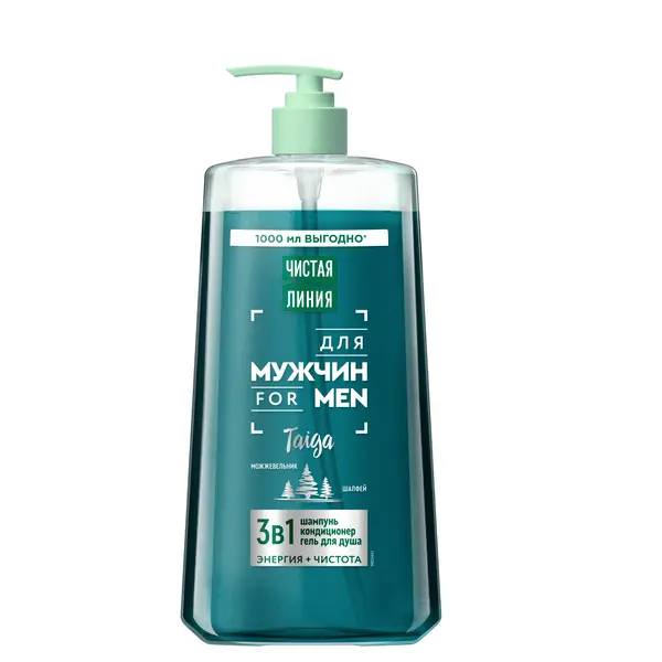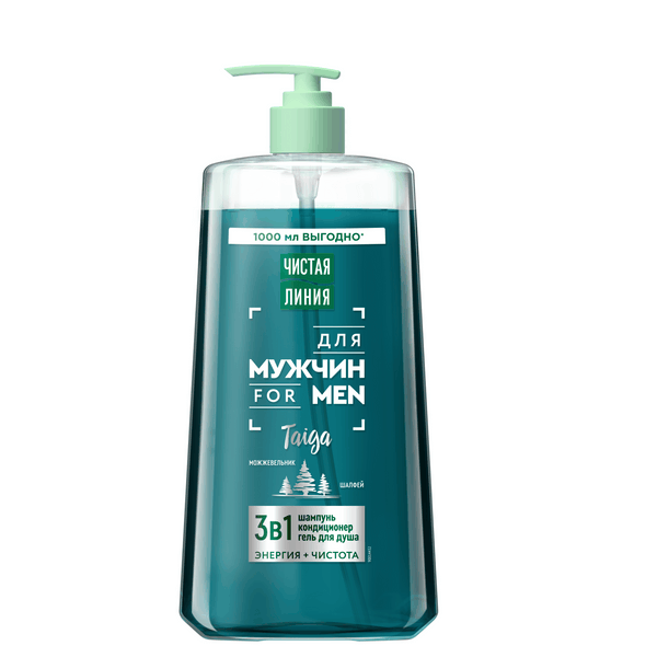 Чистая линия шампунь для мужчин 3 в1 тaiga можжевельник и шалфей 1000 мл