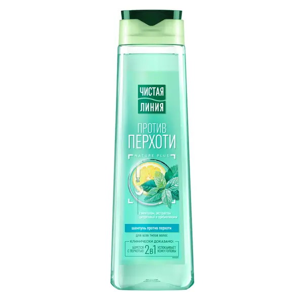 Женский шампунь для волос от перхоти Чистая линия – это новое* эффективное уходовое средство для локонов с ментолом и мятой. Шампунь против перхоти женский подходит для всех типов волос. Очищающий шампунь для волос женский Чистая линия удаляет видимую перхоть при регулярном использовании. Чистая линия шампунь для женщин с эссенцией NATURE PLUS обогащен натуральными ингредиентами. Шампунь женский для волос содержит 5 экстрактов и масел: экстракты шалфея, шиповника и вербены, масла льна и миндаля. Шампунь очищающий для волос не имеет в своем составе силиконов. Шампунь Чистая линия для волос женский с действием 2в1 устраняет перхоть и успокаивает кожу головы. Шампунь с ментолом, экстрактом цитрусовых и пребиотиками эффективно очищает кожу головы, избавляет от шелушения и раздражения. Шампунь для волос женский от перхоти нормализует жирность кожи головы. Чистая линия шампунь для волос с эссенцией NATURE PLUS и пребиотиками в составе помогает поддерживать баланс микробиома кожи головы.