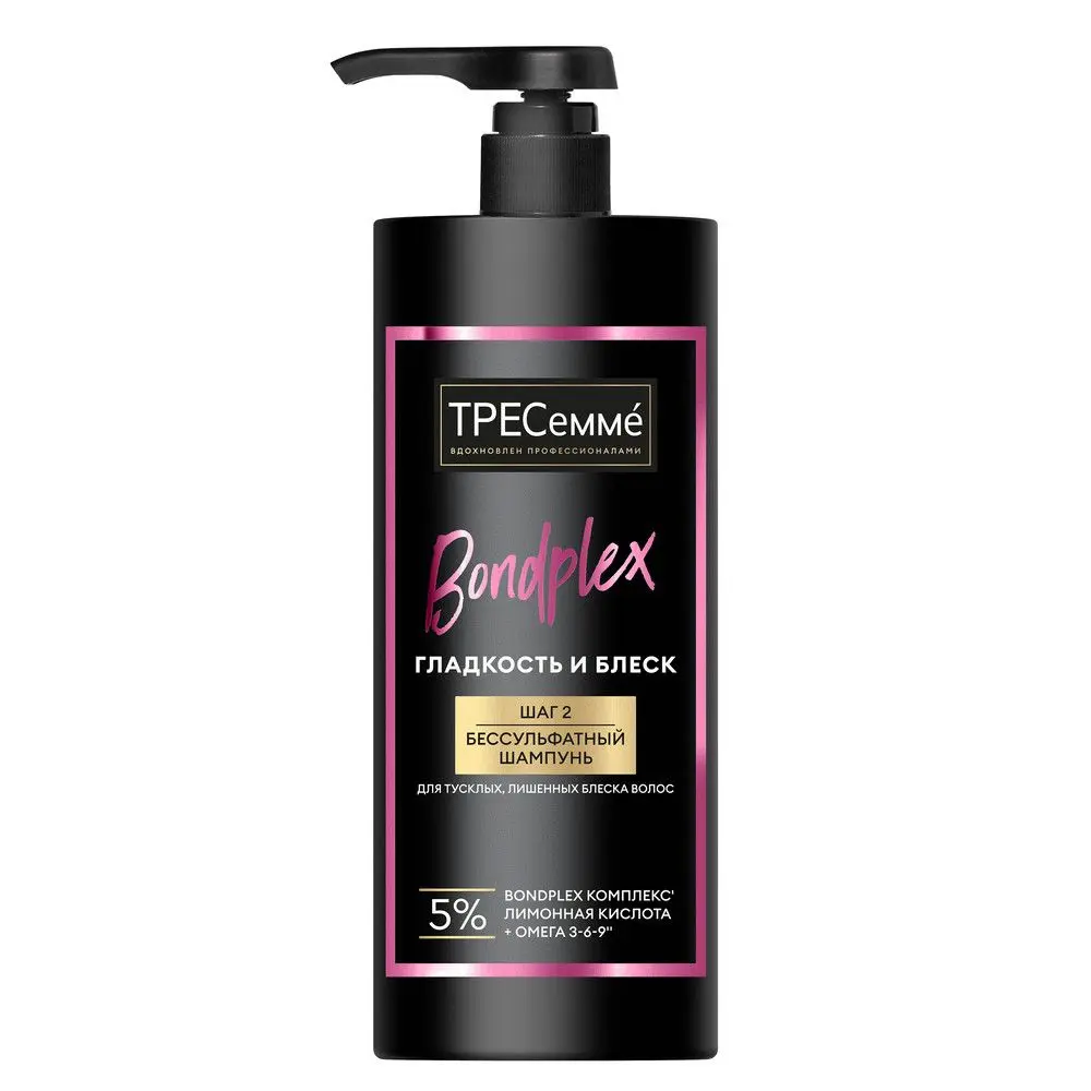 Бессульфатный шампунь для волос ТРЕСеммé Bondplex Гладкость и блеск — это инновационное* средство, разработанное специально для ухода за тусклыми волосами, которые утратили свой естественный блеск. Косметический уходовый продукт предназначен для увлажнения, восстановления и укрепления поврежденных и пористых волос у женщин и девушек.