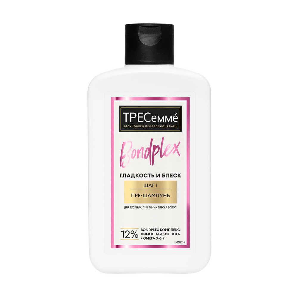 Пре - шампунь для волос ТРЕСеммé Bondplex Гладкость и блеск — это инновационное средство - новинка, созданное специально для предварительного ухода за тусклыми волосами, которые утратили свой естественный блеск. Этот уходовый косметический продукт предназначен для восстановления и укрепления поврежденных и пористых волос у женщин и девушек.
