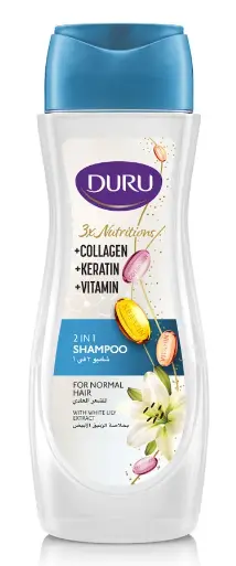 Шампунь DURU, обогащенный экстрактом белой лилии и жемчуга, придает силу и сияние волосам. Он обеспечивает увлажнение и мягкость ваших волос.