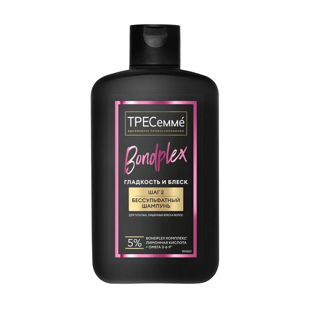 Формула средства обогащена комплексом Bondplex с лимонной кислотой и омега 3-6-9** в составе. Благодаря формуле с этими компонентами волосы становятся гладкими и блестящими уже после первого применения. Пряди приобретают эффект ламинирования за 1 применение''. А также гладкость без спутывания и стойкий блеск на 72 часа'. Бессульфатная формула обеспечивает мягкое очищение, сохраняет баланс кожи головы и яркость цвета волос. Ваши локоны выглядят так, словно вы только что вышли из салона красоты!