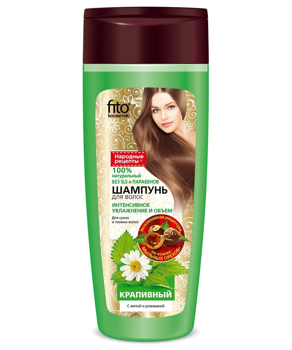 Народные рецепты шампунь для сухих и тонких волос крапивный с мятой и ромашкой 270 мл
