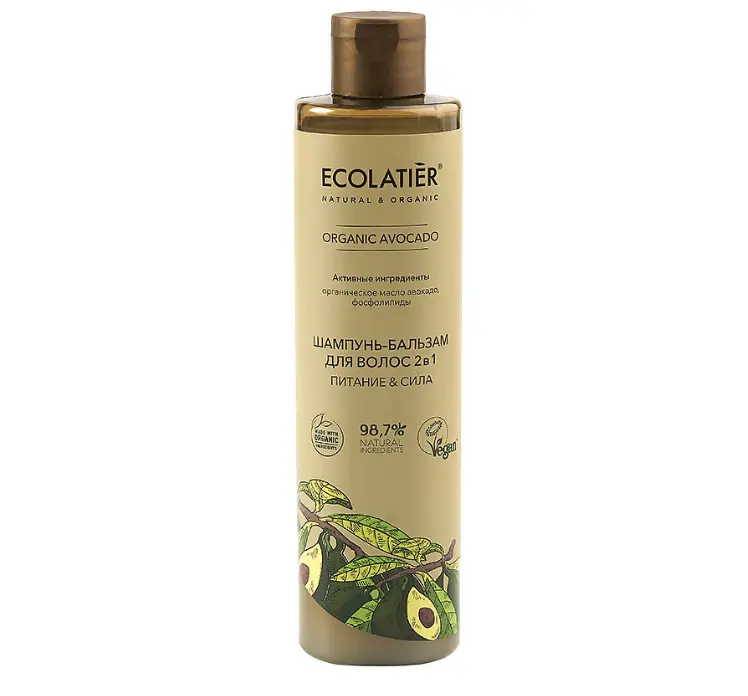 Шампунь-бальзам 2 в 1 ECOLATIER® Organic Avocado бережно очищает волосы и кожу головы, поддерживает естественный защитный барьер, обеспечивает волосам нежный уход, мягкость и легкое расчесывание.