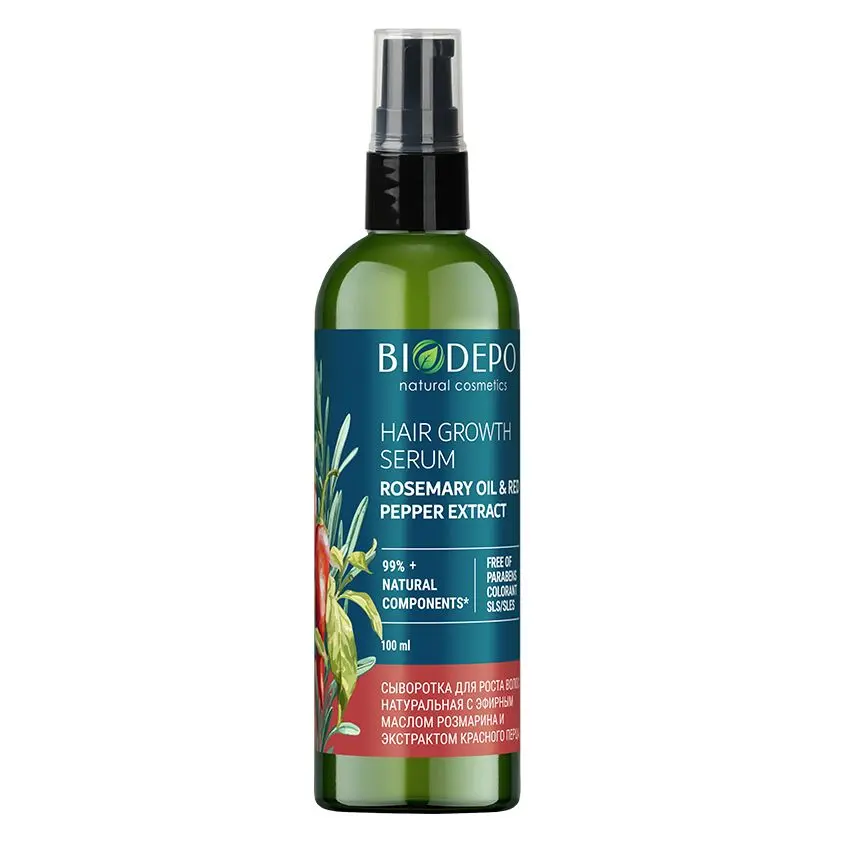 Biodepo сыворотка для роста волос натуральная с эфирным маслом розмарина и экстрактом красного перца 100 мл